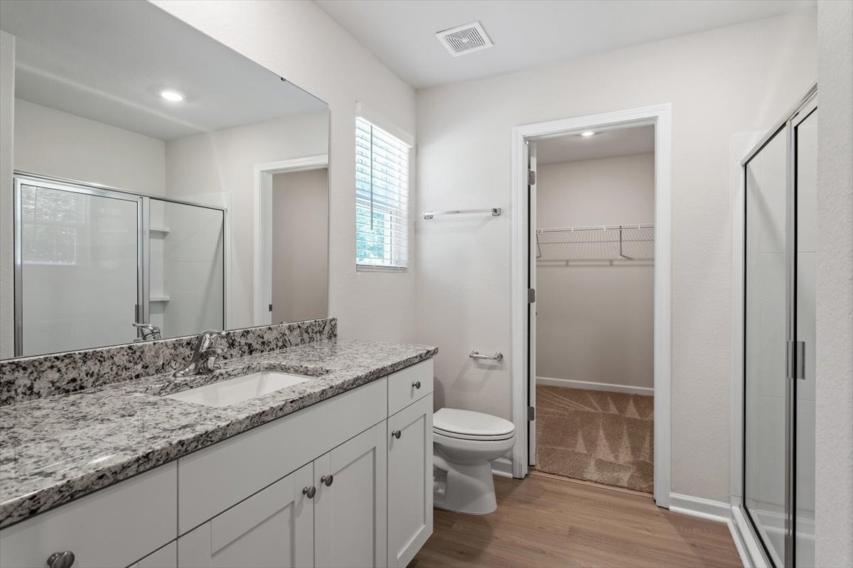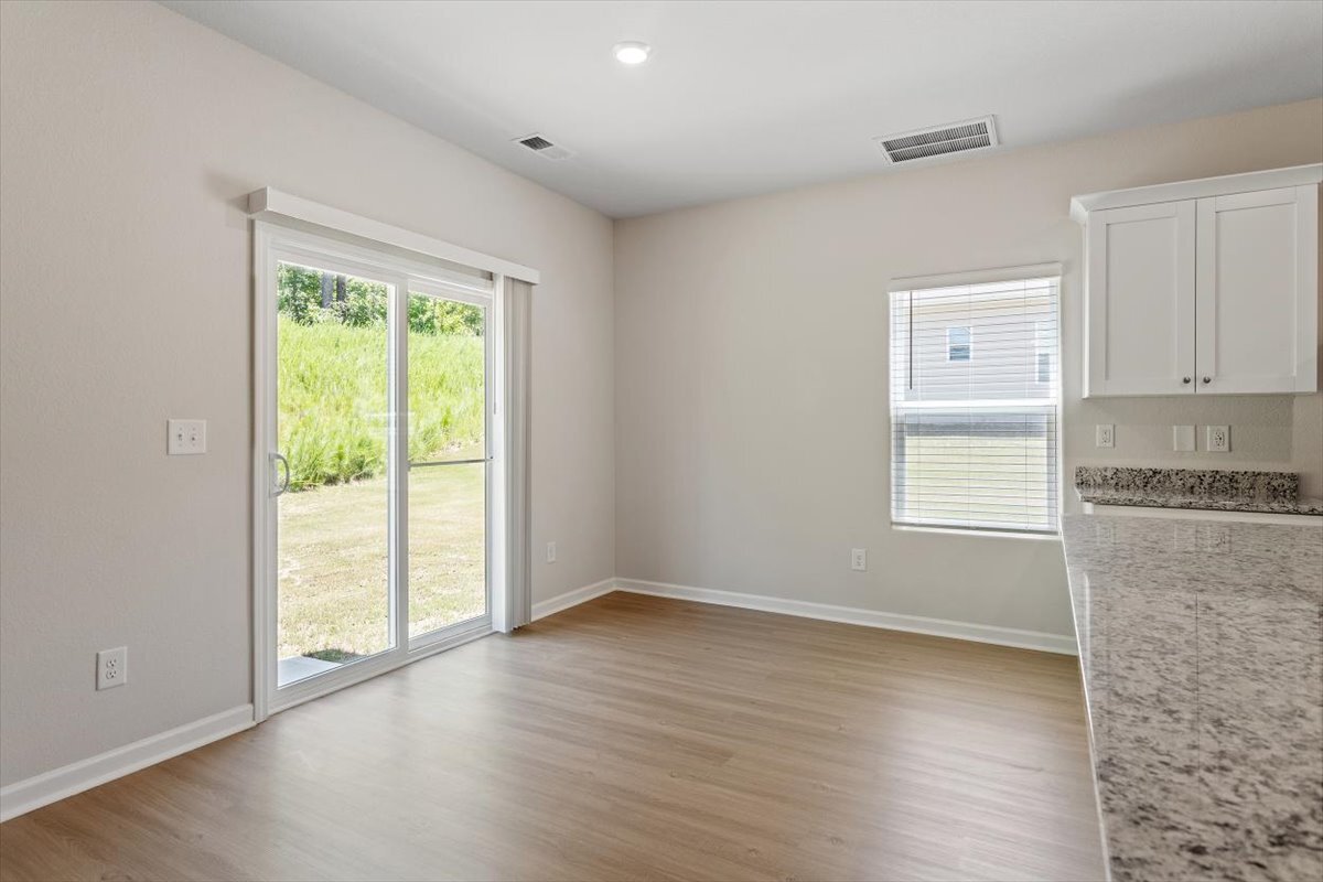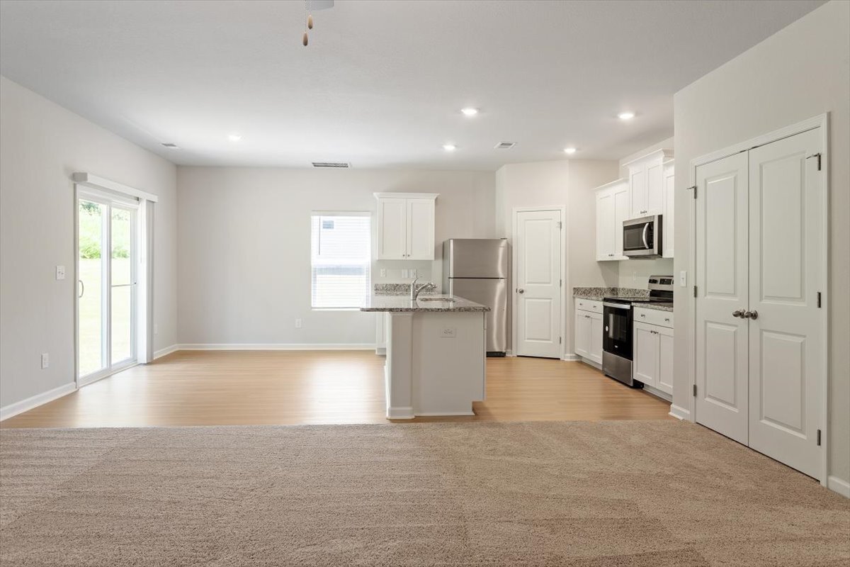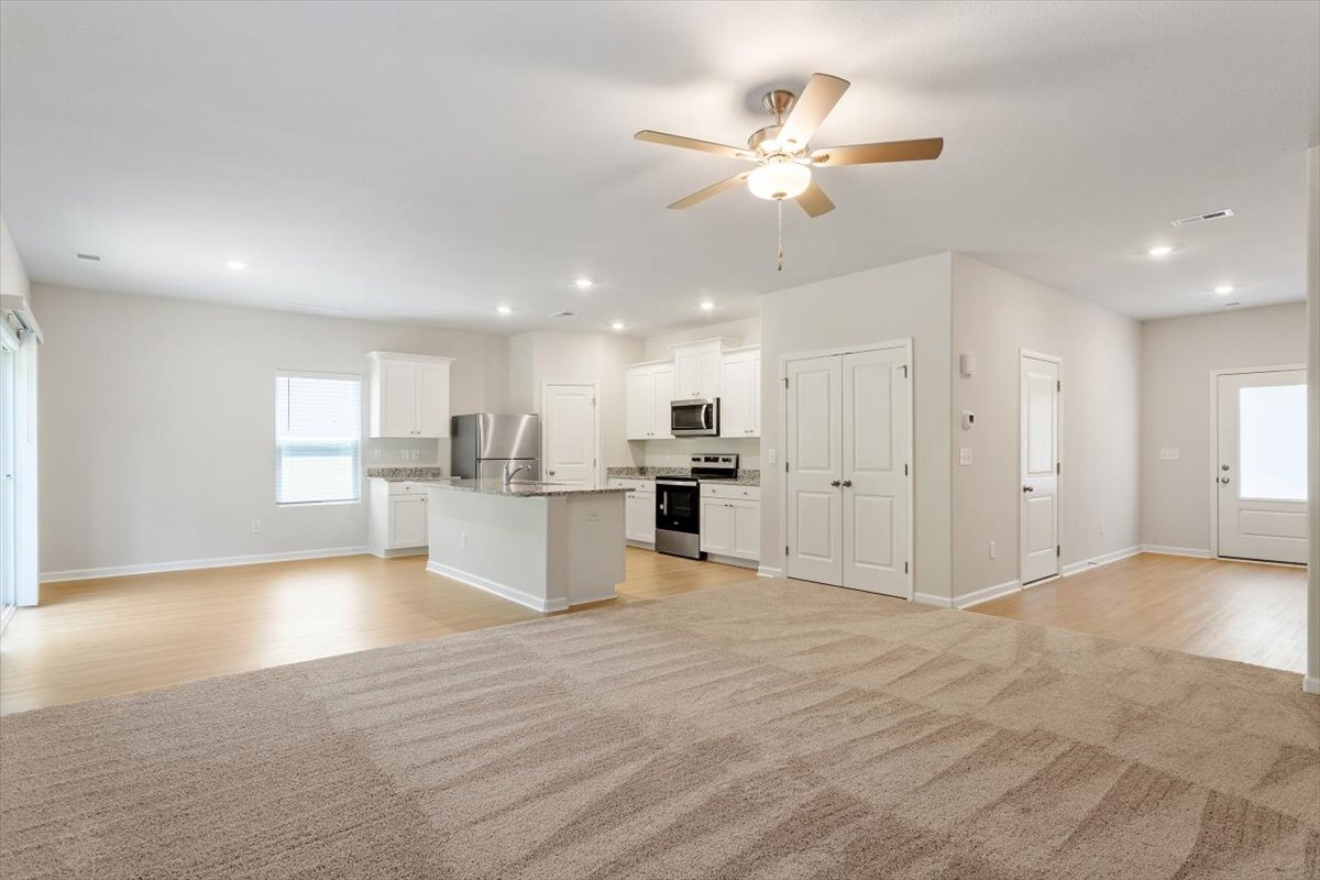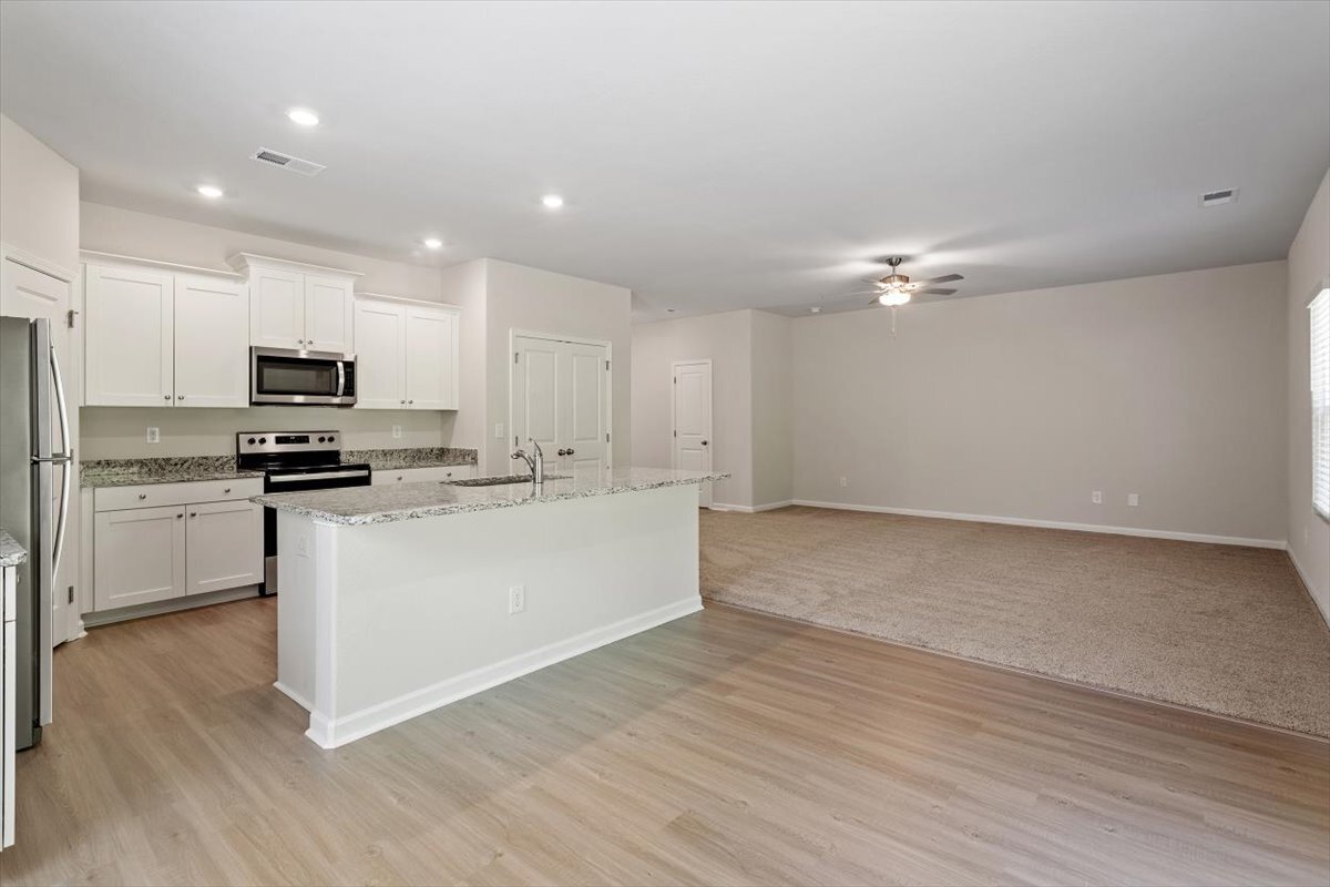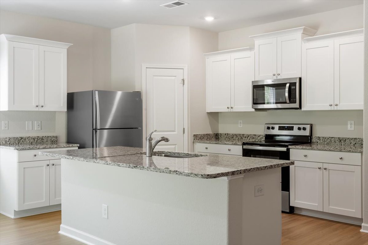 Welcome to this like-new 4-bedroom, 2.5-bathroom home with a 2-car garage in a desirable, vibrant, and well-maintained community! From the moment you step inside, you'll be greeted by an abundance of natural light and a thoughtfully designed open floor plan that provides both comfort and functionality for everyday living and entertaining. The main level features luxury vinyl plank flooring that adds warmth and durability, complemented by granite countertops throughout the home for a polished, upscale look. The spacious living room offers plenty of space to relax and flows seamlessly into the kitchen and dining area, creating a central hub perfect for hosting gatherings. The kitchen is a showstopper, with a kitchen island boasting white 42-inch cabinets, stainless steel appliances, and generous counter space—ideal for both meal prep and casual dining. Upstairs, retreat to the primary suite with a vaulted ceiling, your private haven featuring walk-in closets and a luxurious en-suite bathroom with a separate shower and extra built-in shelving for convenient storage. Three additional bedrooms share a well-appointed full bathroom, offering flexibility for family, guests, or a home office setup. Outside, you'll find the front porch and backyard, providing plenty of room for outdoor dining, play, gardening, or simply enjoying your own private retreat. Residents of this community enjoy access to fantastic amenities, including a playground, picnic area with grill, and a dog park, making it ideal for families and pet lovers alike. The location offers easy access to nearby destinations—just minutes from Downtown Angier, Fuquay-Varina, Lillington, and Campbell University—giving you the best of small-town charm with close proximity to shopping, dining, and schools. Don't miss the opportunity to own this beautifully maintained home that combines modern finishes, thoughtful design, and a convenient location. Schedule your showing today! The seller has never occupied the home.